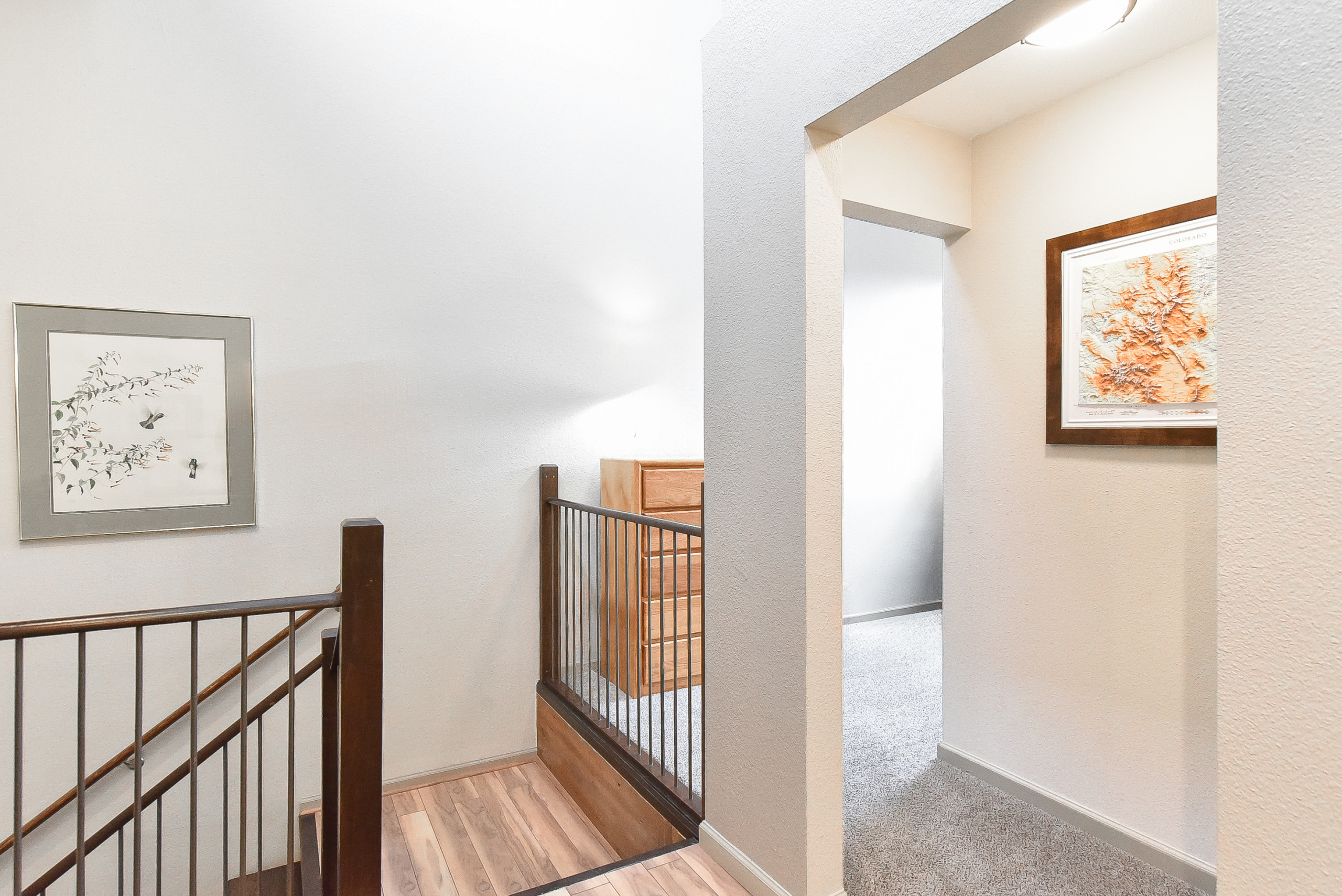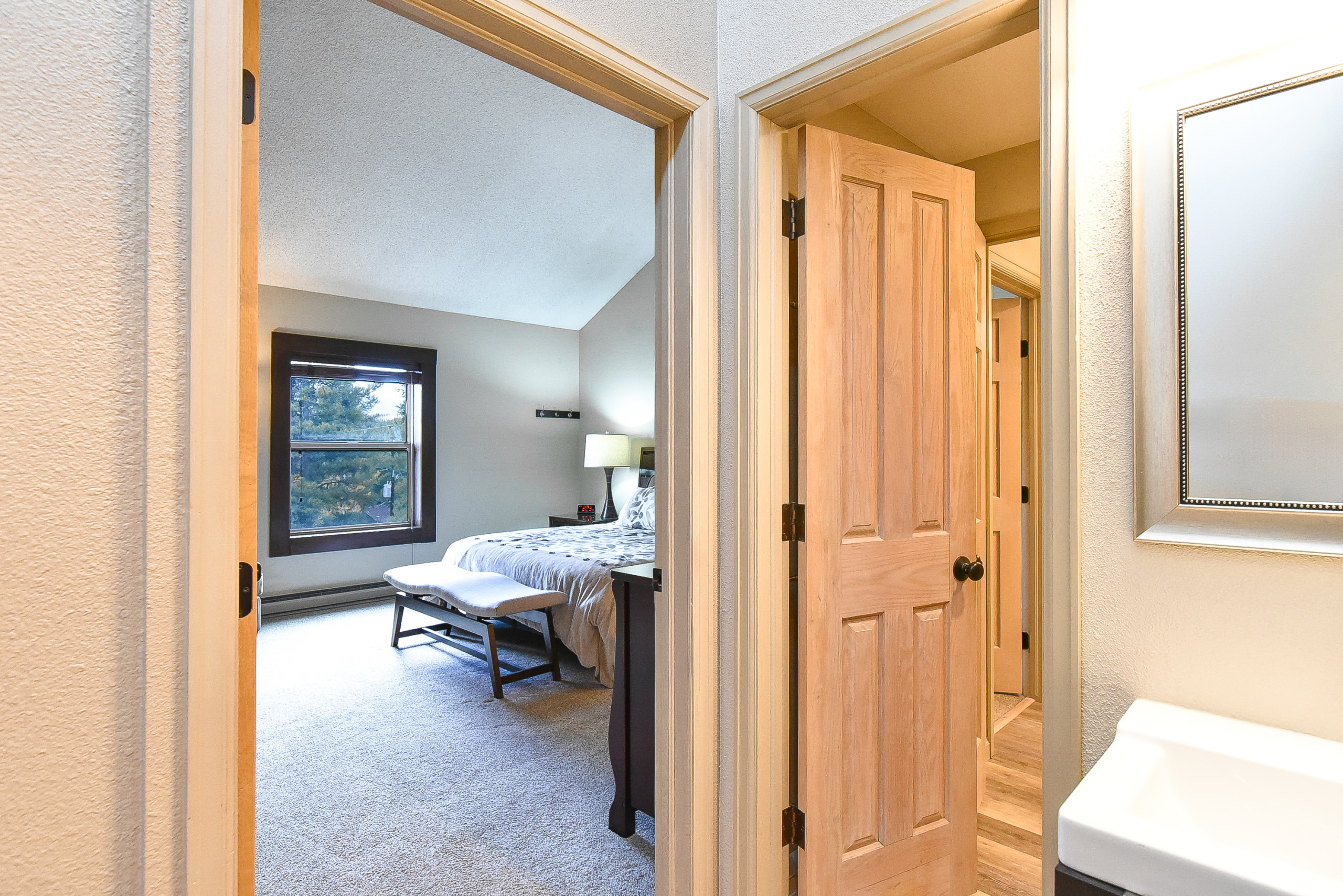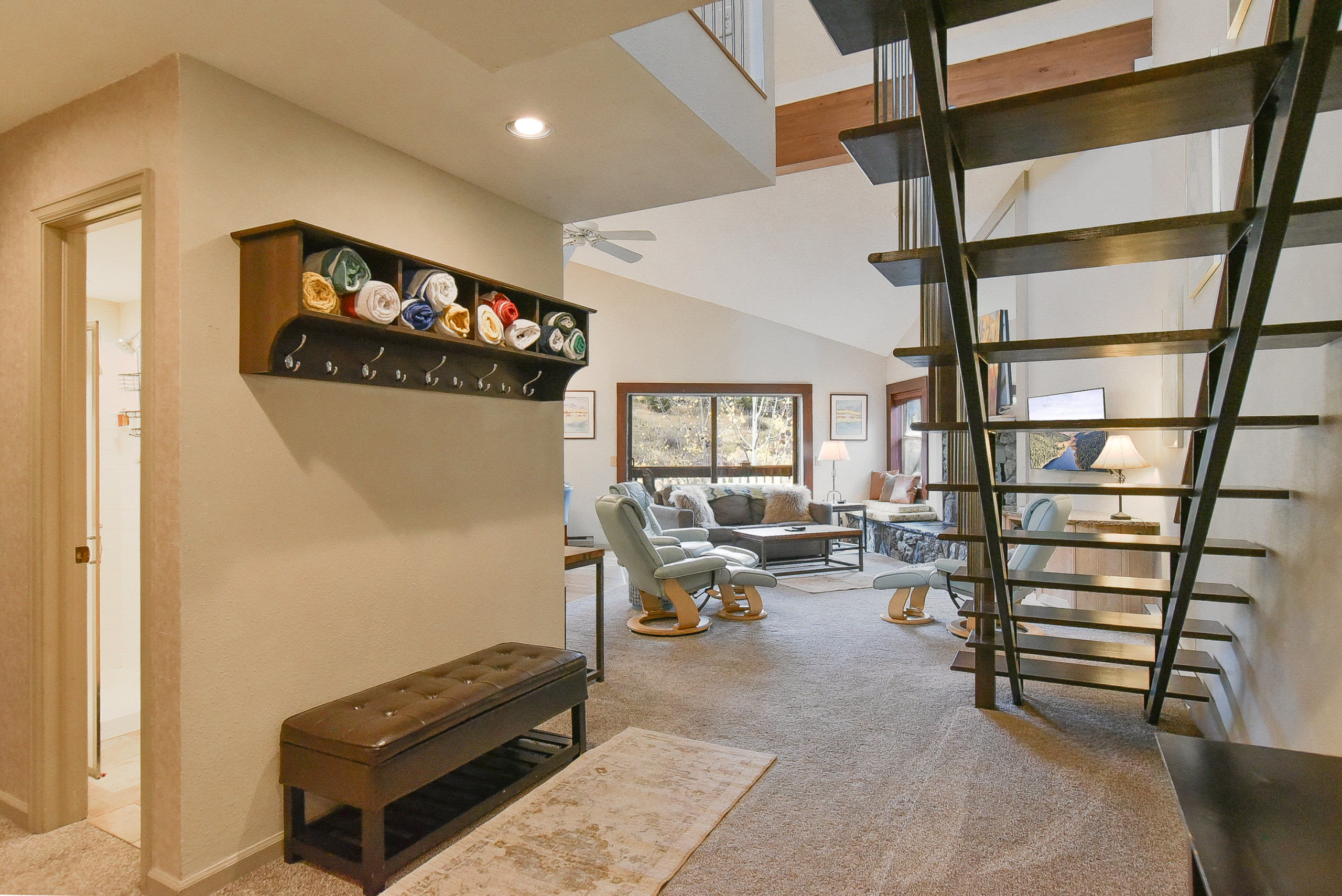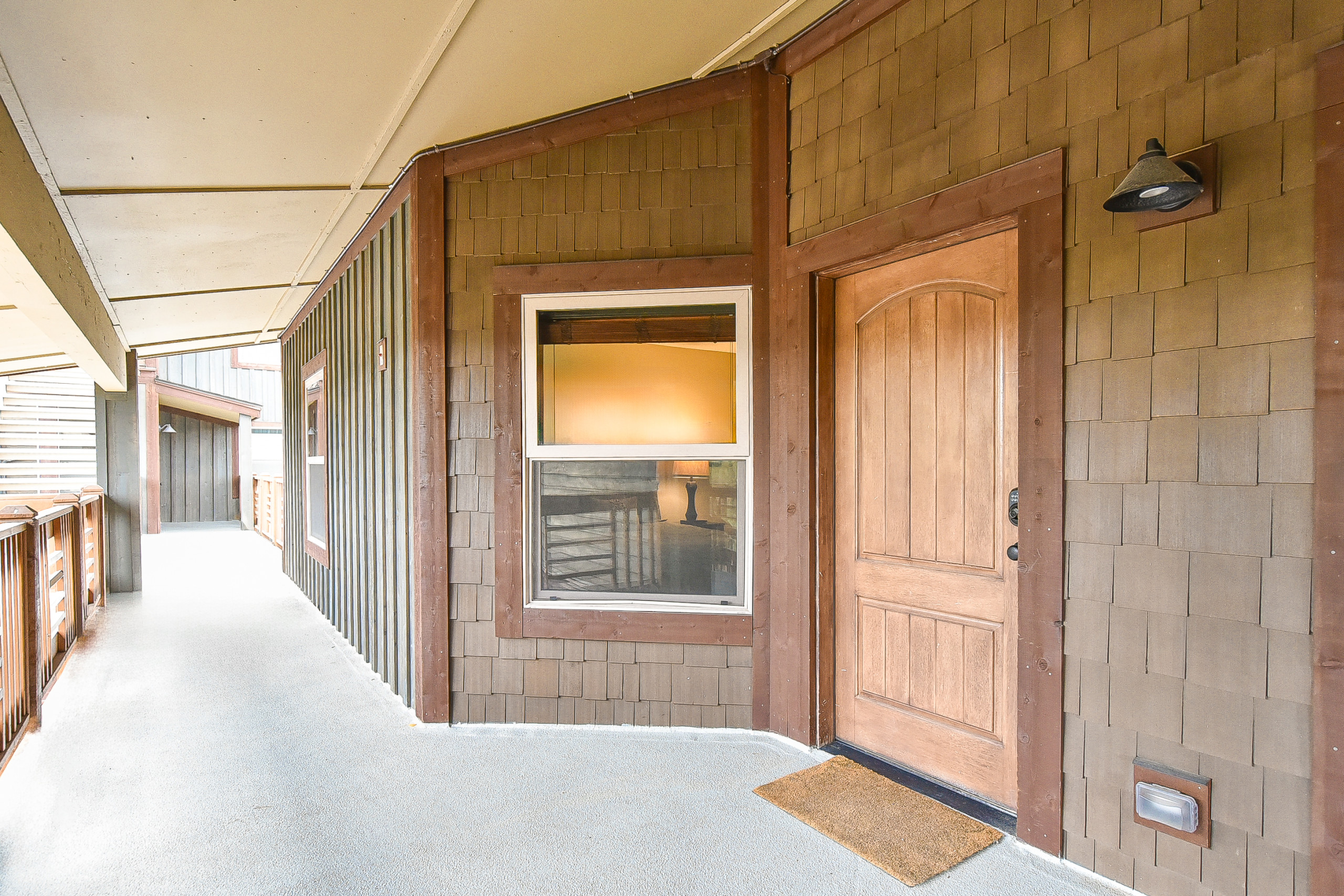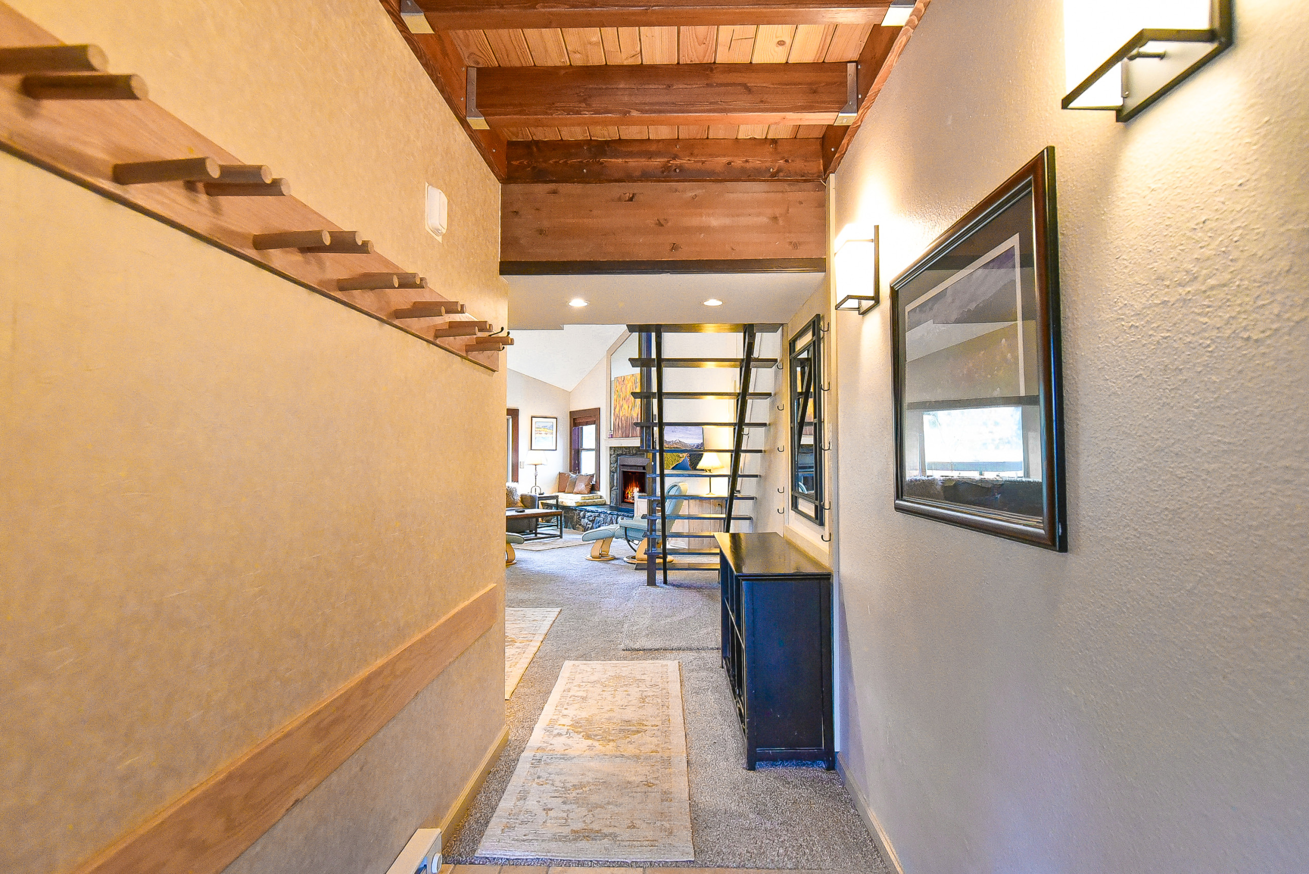 This townhome is a two-floor unit located on the 1st and 2nd floors of the building nestled in the pines.