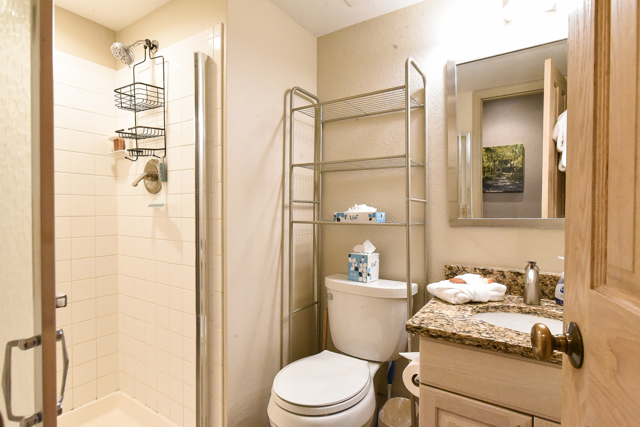 2nd Full Bath - The 2nd hall bathroom features a walk-in shower, vanity with storage, and blow dryer.