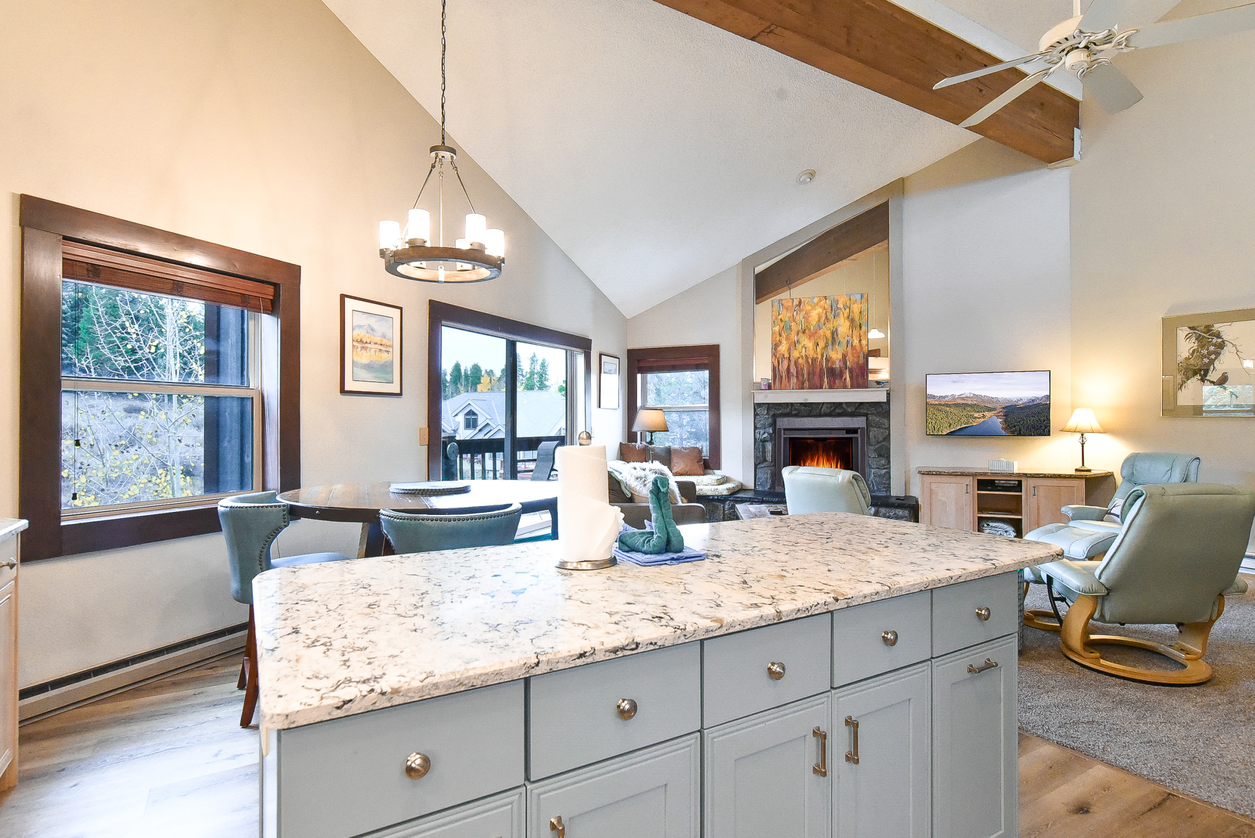 When you're not skiing or exploring town, take advantage of the fantastic community amenities available to guests. Unwind in one of the shared outdoor hot tubs under the stars or take a dip in the pool. Inside, curl up by the gas fireplace with a warm drink, or gather for a movie night in the spacious living room. Whether you're here for adventure or relaxation, this home offers the perfect balance of comfort, convenience, and alpine charm.