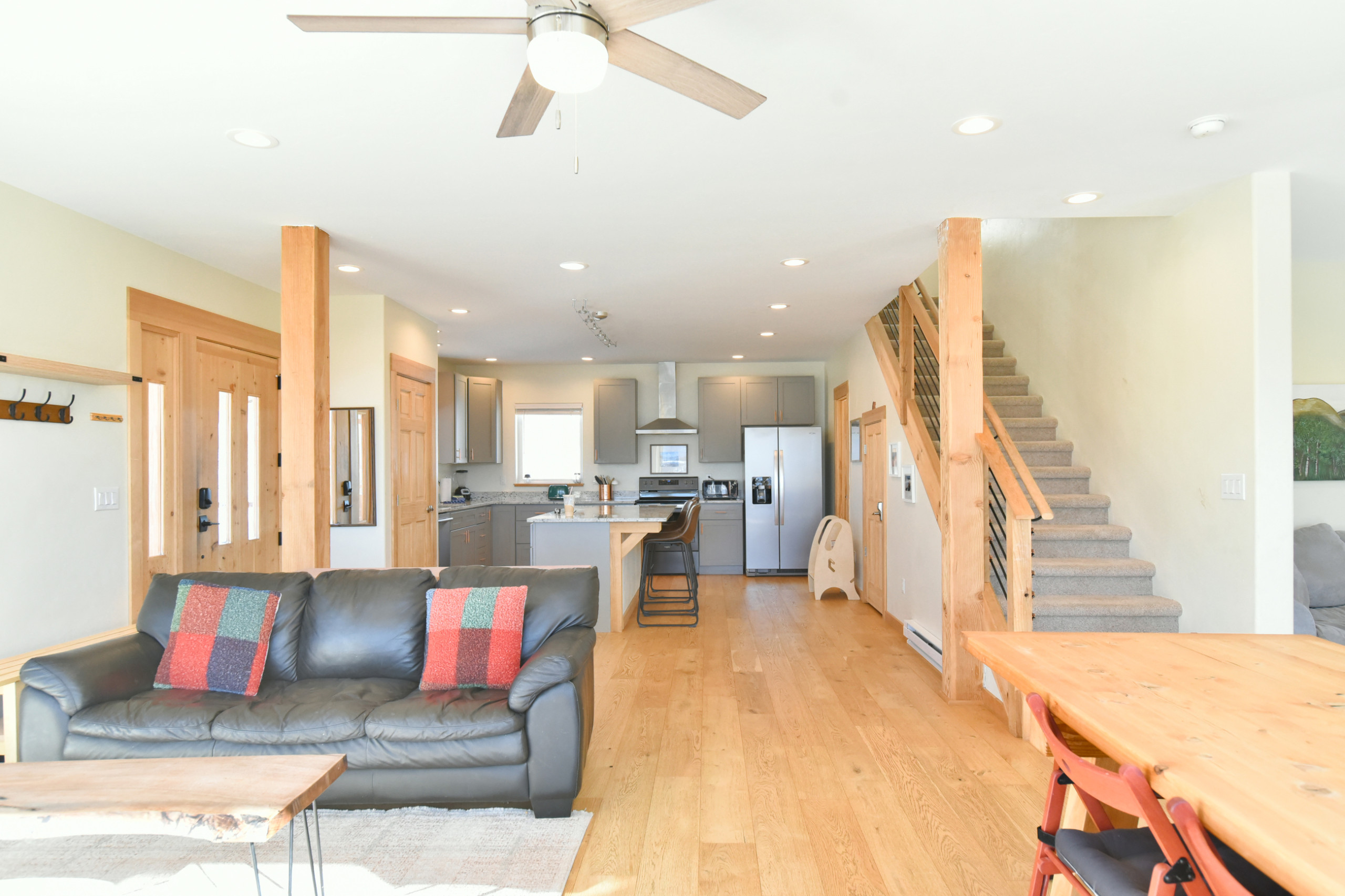 The main living area is bright and inviting, with large windows that frame the scenery and bring the outdoors in. Step onto the wraparound deck, furnished with plenty of seating, and enjoy fresh mountain air, wide-open skies, and unforgettable sunsets after a day of adventure.