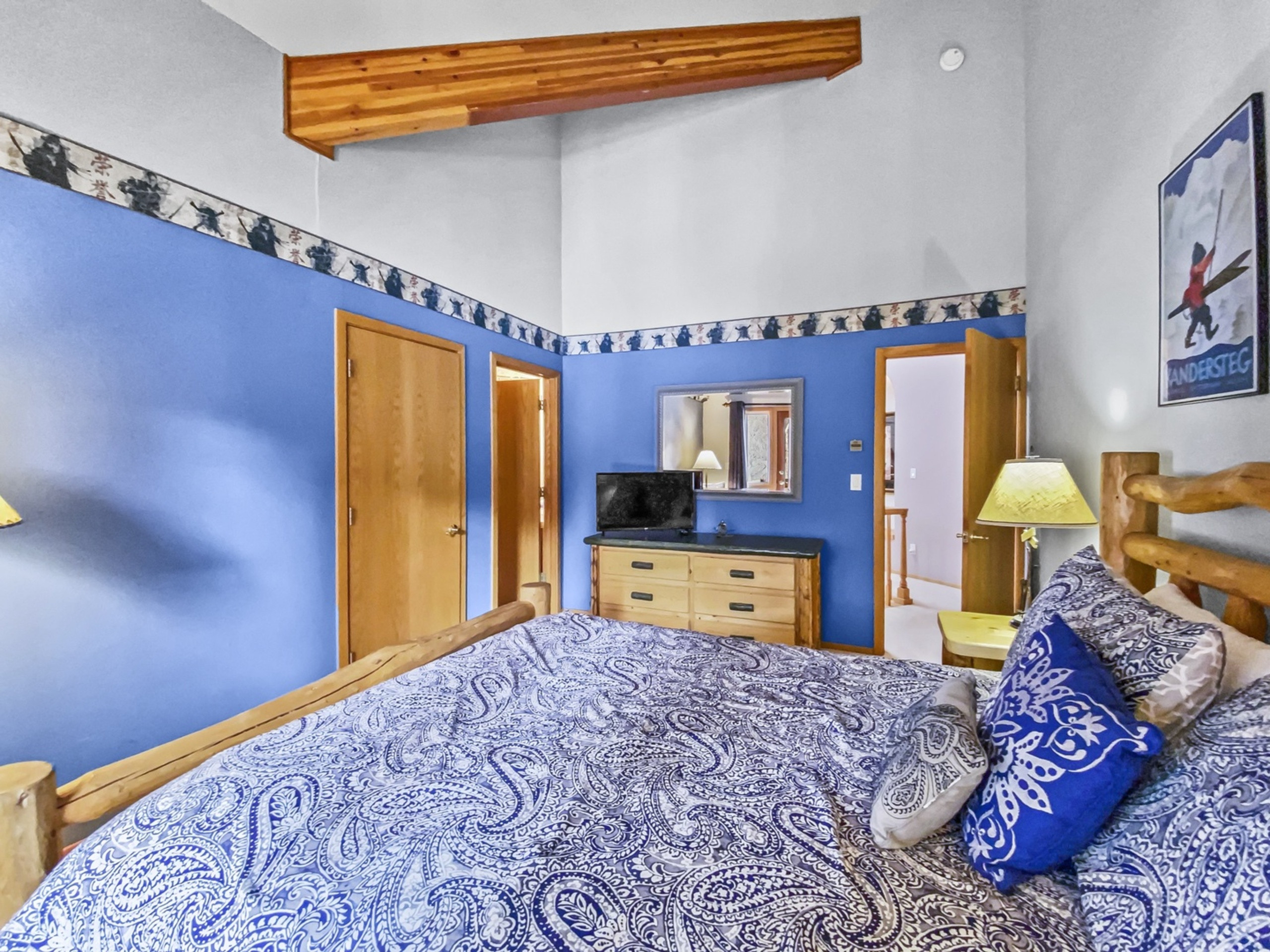 • Queen Bedroom: Queen bed, vaulted ceilings, flat screen TV