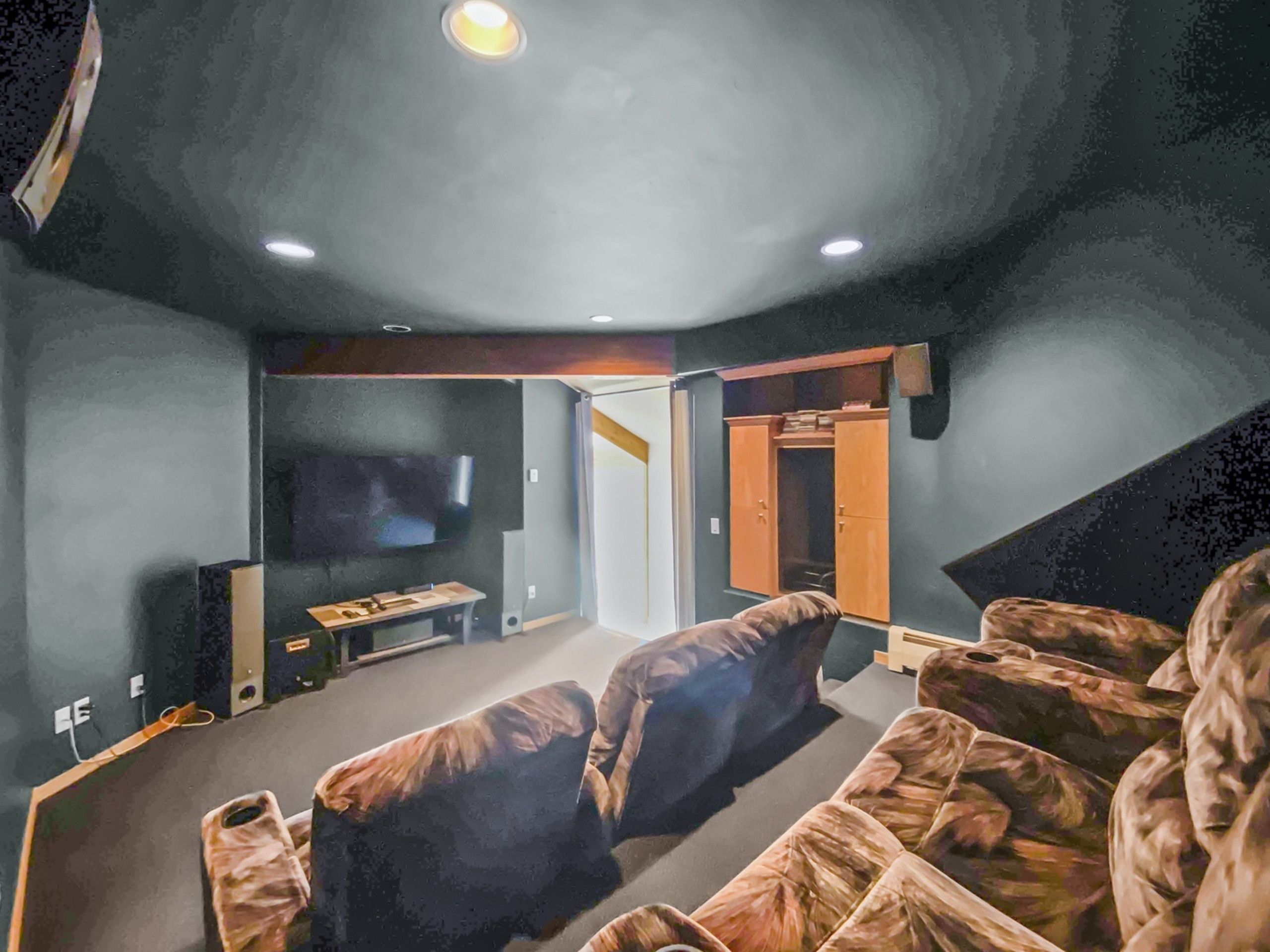 Gather in the view-filled living room (large TV + stone wood-burning fireplace) or cue up a movie in the home theater. The chef’s kitchen is fully equipped for big breakfasts and hearty après dinners; step onto the deck to grill and soak in the hot tub under the stars.
