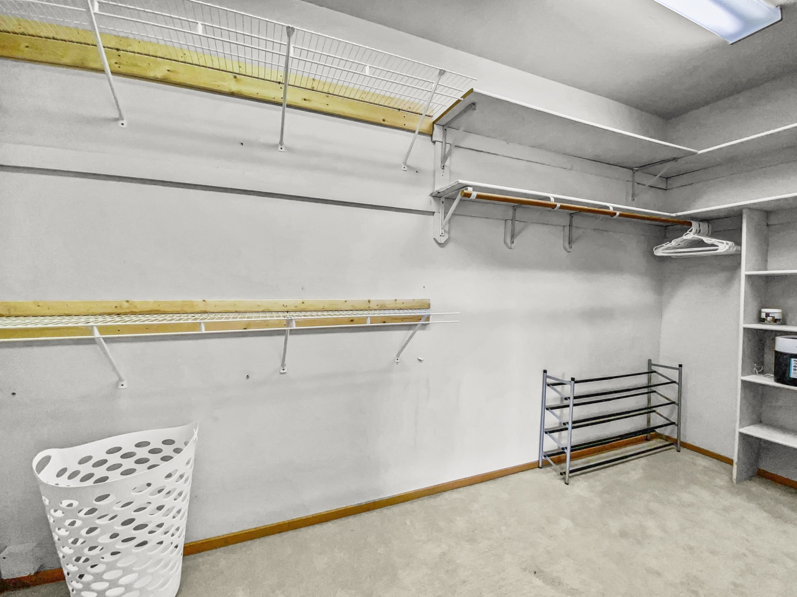Also off the Game Room is a Queen Ensuite Bedroom with a large walk-in closet, a TV set up for streaming, and an Ensuite bathroom with a walk-in shower.