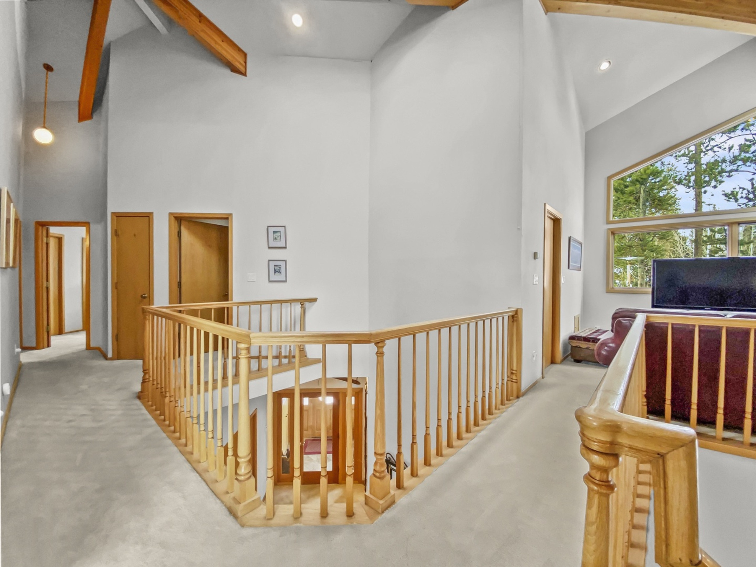 Climb one more flight to the Primary Floor - Master King Bedroom. This is a special private sanctuary to escape to for a nap, a quiet space to read or grab some alone time on the private deck. At the end of a long day of play, you can experience a restful night's sleep, with the screen door letting the cool night air and wind in the pine sounds lull you to sleep.